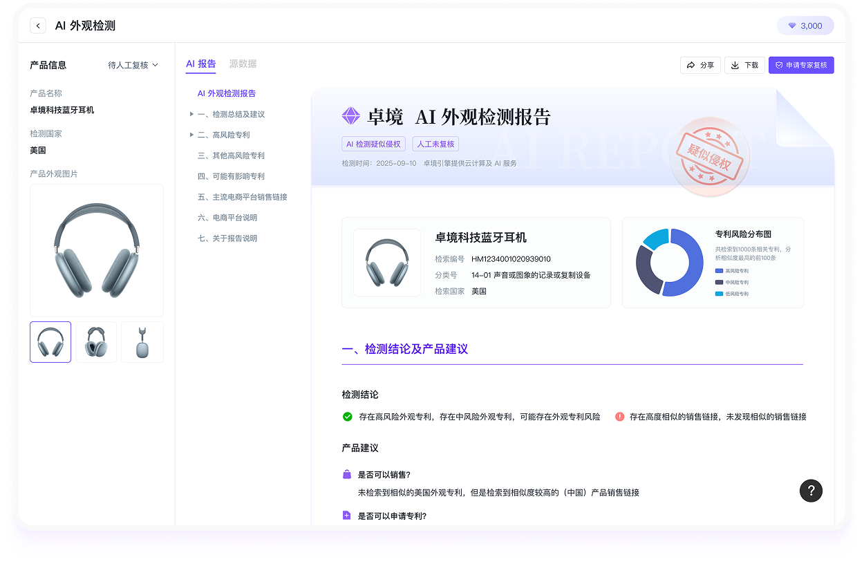 AI 智能引擎启动,为您全面扫描外观专利潜在风险